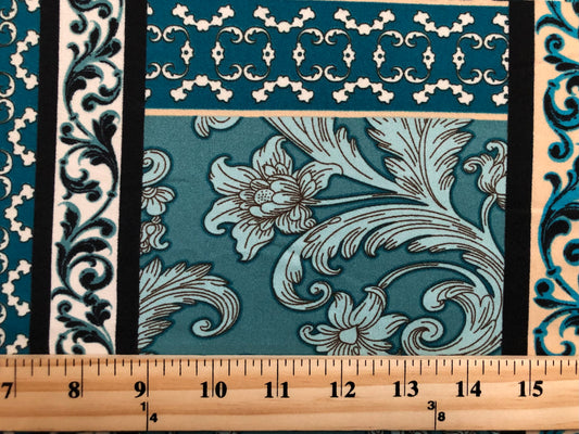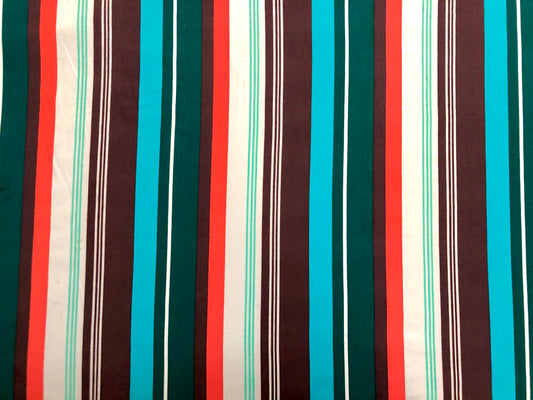 DTY Brushed Fabric-Ivory Brown Turquoise Stripes-DTYBPR210-Sold by the Yard-Jersey Fabric