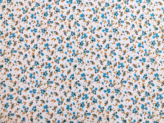 DTY Brushed Rib Fabric-Ivory Turquoise Mustard 1/4" Flowers-DTYRBPR04-Sold by the Yard-Apparel Fabric