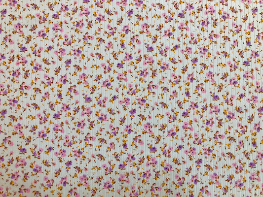 DTY Brushed Rib Fabric-Ivory Pink Lavender Mustard 1/4" Flowers-DTYRBPR03-Sold by the Yard-Apparel Fabric