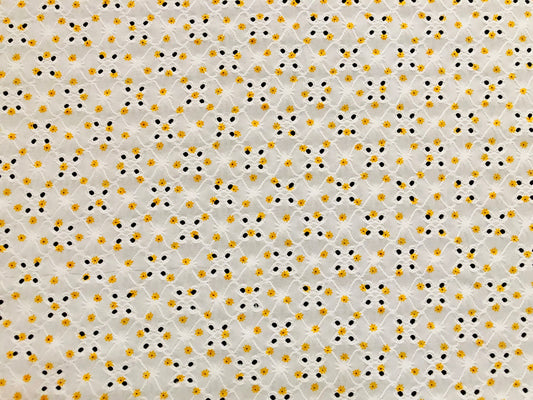 DTY Eyelet Fabric-Ivory Yellow 1/4" Sunflowers-DTYBPR525-Sold by the Yard-Apparel Fabric