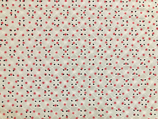 DTY Eyelet Fabric-Vanilla Red Green 1/2" Buttercup Flowers-DTYPR524-Sold by the Yard-Apparel Fabric