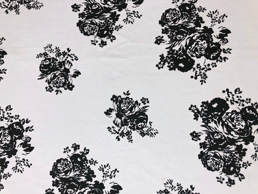 DTY Brushed Fabric-Ivory Black Roses-DTYBPR530-Sold by the Yard-Jersey Fabric