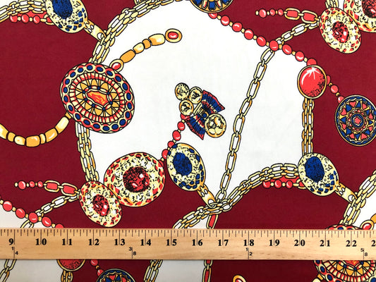 DTY Non-Brushed Fabric-Ivory Burgundy Golden Chains-DTYNBPR230-Sold by the Yard-Spandex Fabric