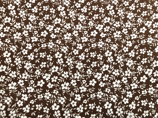 DTY Brushed Fabric-Dark Brown White Flowers-DTYBPR336-Sold by the Yard-Jersey Fabric
