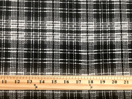 Liverpool Knit — Black & White Tartan Plaid — 56″ Wide, 200 GSM, 4-Way Stretch — Sold by the Yard (LVPR359)