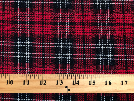 Liverpool Knit — Red & Black Tartan Plaid — 56″ Wide, 200 GSM, 4-Way Stretch — Sold by the Yard (LVPR360)