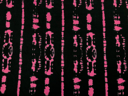 Liverpool Knit — Hot Pink Shibori Stripe on Black Ground, 56″ Wide, 200 GSM, 4-Way Stretch — Sold by the Yard (LVPR361)