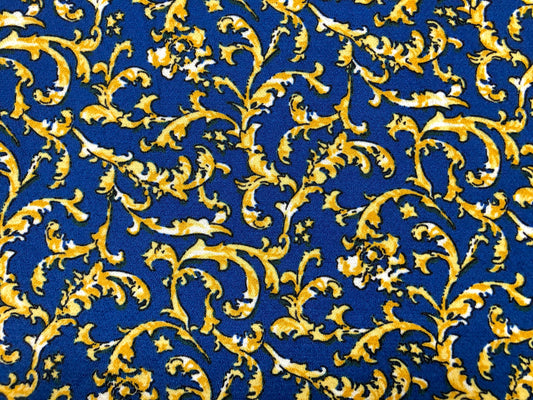 Liverpool Knit — Royal Blue Baroque Scroll — 56″ Wide, 200 GSM, 4-Way Stretch — Sold by the Yard (LVPR242)