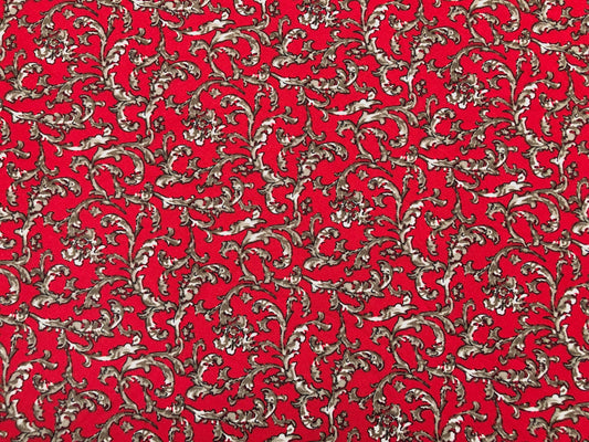 Liverpool Knit — Red Baroque Scroll — 56″ Wide, 200 GSM, 4-Way Stretch — Sold by the Yard (LVPR243)