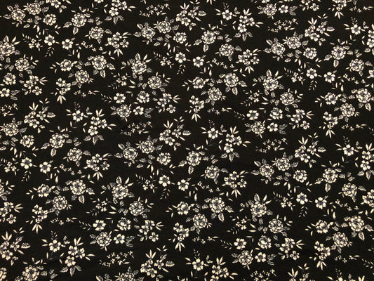 Liverpool Knit Fabric – Black & Ivory Ditsy Floral – 4-Way Stretch, 56” Wide, 200 GSM – Sold by the Yard (LVPR251)