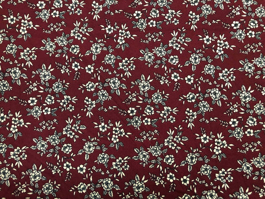 Liverpool Knit Fabric – Burgundy & Ivory Ditsy Floral – 4-Way Stretch, 56” Wide, 200 GSM – Sold by the Yard (LVPR248)