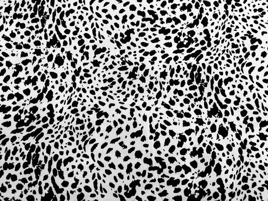 Liverpool Knit Fabric – White & Black Dalmatian Swirl – 4-Way Stretch, 56" Wide, 200 GSM – Sold by the Yard (LVPR253)