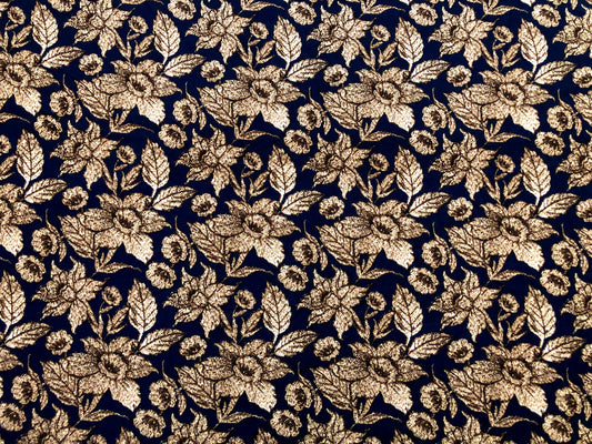 Liverpool Knit Fabric – Navy & Brown Wild Rose Vintage Floral – 4-Way Stretch, 56” Wide, 200 GSM – Sold by the Yard (LVPR259)