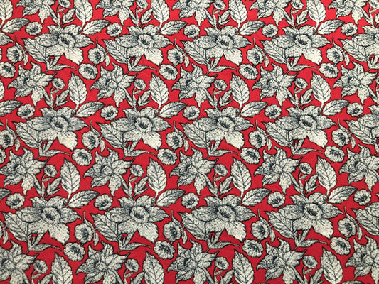 Liverpool Knit Fabric – Red & Taupe Wild Rose Vintage Floral – 4-Way Stretch, 56” Wide, 200 GSM – Sold by the Yard (LVPR258)