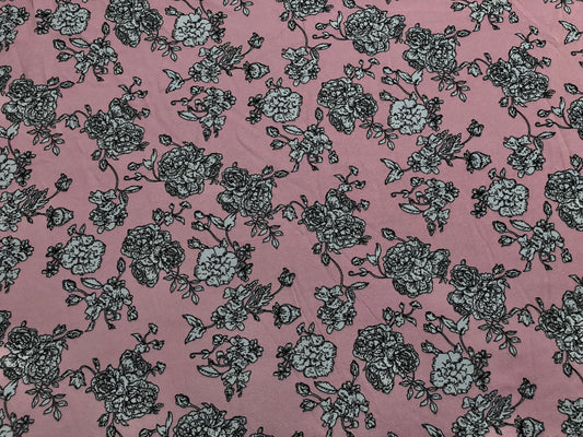 Liverpool Knit Fabric – Pink & Soft Gray Sketch Peony Floral – 4-Way Stretch, 56” Wide, 200 GSM – Sold by the Yard (LVPR260)