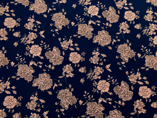 Liverpool Knit Fabric – Navy & Pink Sketch Peony Floral – 4-Way Stretch, 56” Wide, 200 GSM – Sold by the Yard (LVPR261)