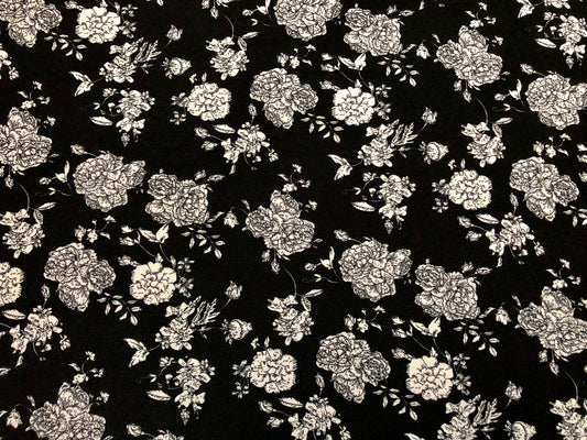 Liverpool Knit Fabric – Black & Ivory Sketch Peony Floral – 4-Way Stretch, 56” Wide, 200 GSM – Sold by the Yard (LVPR262)