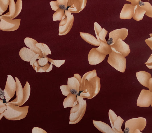 Liverpool Knit – Burgundy & Champagne Magnolia Blooms – 4-Way Stretch, 56″ Wide, 200 GSM – Sold by the Yard (LVPR202)