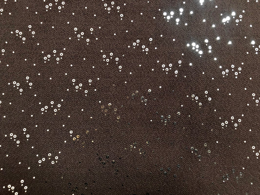 Liverpool Knit Fabric — Espresso Brown & Silver Confetti Sequin — 56" Wide, 200 GSM, 4-Way Stretch, Double Knit — Sold by the Yard (LVPR209)