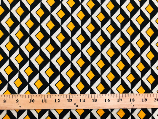 Liverpool Knit Fabric — Black, Ivory & Yellow Chevron Diamond — 56" Wide, 200 GSM, 4-Way Stretch, Double Knit — Sold by the Yard (LVPR218)