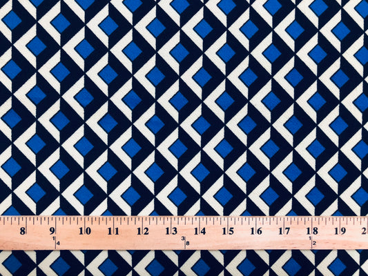 Liverpool Knit Fabric — Navy, Ivory & Royal Blue Chevron Diamond — 56" Wide, 200 GSM, 4-Way Stretch, Double Knit — Sold by the Yard (LVPR217)
