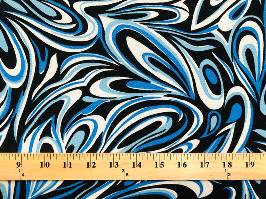 Liverpool Knit Fabric — Navy, Black & Ivory Blue Marble Swirl — 56" Wide, 200 GSM, 4-Way Stretch, Double Knit — Sold by the Yard (LVPR219)