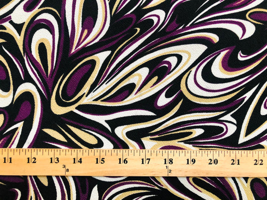 Liverpool Knit Fabric — Plum/Gold/Ivory & Black Marble Swirl — 56" Wide, 200 GSM, 4-Way Stretch, Double Knit — Sold by the Yard (LVPR221)