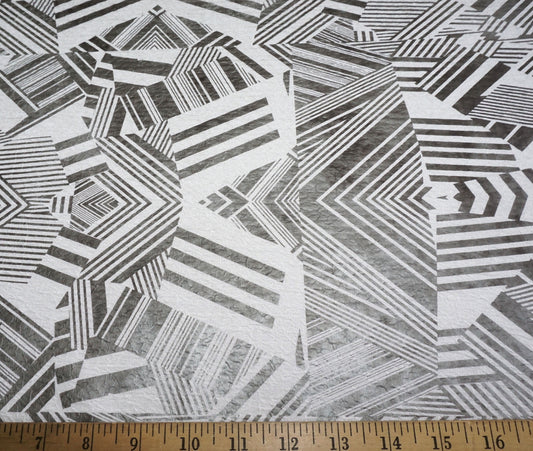Liverpool Knit – Ivory & Silver Metallic Foil Geometric – 4-Way Stretch, 52″ Wide, 200 GSM – Sold by the Yard (LVPRF001)