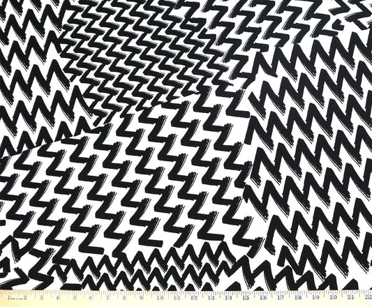 Liverpool Knit – Black & White Brushstroke Zigzag – 4-Way Stretch, 56″ Wide, 200 GSM – Sold by the Yard (LVPR035)