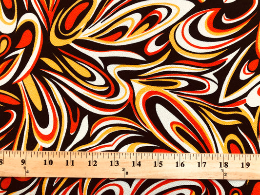 Liverpool Knit Fabric — Burnt Orange/Mustard Gold/Ivory & Black Marble Swirl — 56" Wide, 200 GSM, 4-Way Stretch, Double Knit — Sold by the Yard (LVPR222)