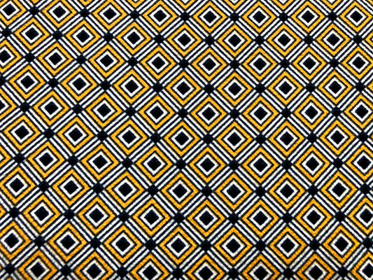 Liverpool Knit — Mustard & Black Geometric Diamond Lattice — 56″ Wide, 200 GSM, 4-Way Stretch — Sold by the Yard (LVPR0238)