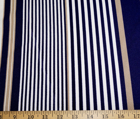 Liverpool Knit – Navy, Taupe & Ivory Vertical Stripes – 4-Way Stretch, 56″ Wide, 200 GSM – Sold by the Yard (LVPR114)