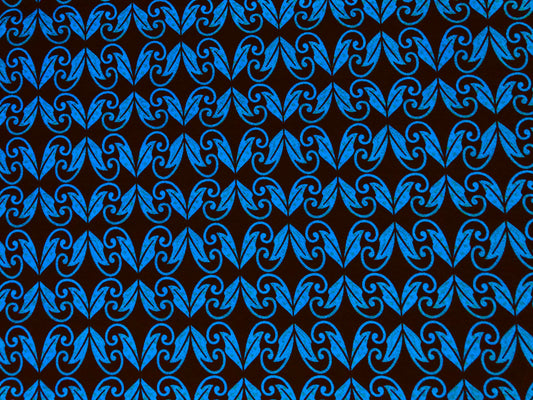 Liverpool Knit – Electric Blue Deco Scroll on Black – 4-Way Stretch, 200 GSM, 56" Wide – Sold by the Yard (LVPR345)