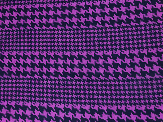 Liverpool Knit Fabric — Purple & Black Houndstooth — 4-Way Stretch, 56″ Wide, 200 GSM — Sold by the Yard (LVPR357)