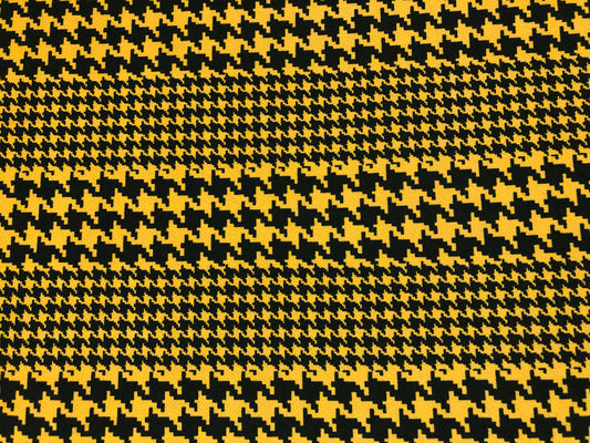 Liverpool Knit Fabric — Mustard & Black Houndstooth — 4-Way Stretch, 56″ Wide, 200 GSM — Sold by the Yard (LVPR358)