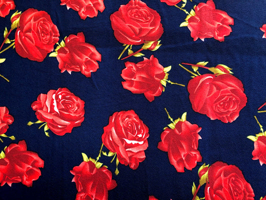 Liverpool Knit – Navy & Vivid Scarlet Roses – 4-Way Stretch, 56″ Wide, 200 GSM – Sold by the Yard-(LVPR201)