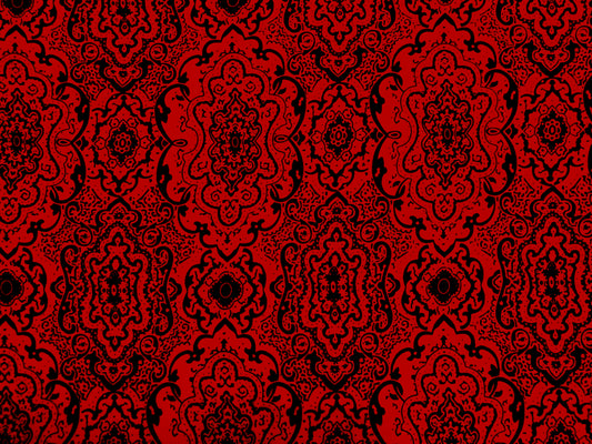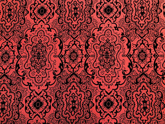 Liverpool Knit Fabric — Red & Black Baroque Medallion Paisley — 56" Wide, 200 GSM, 4-Way Stretch, Double Knit — Sold by the Yard (LVPR204)