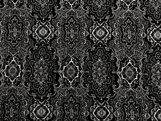 Liverpool Knit – Black & White Baroque Medallion Paisley – 4-Way Stretch, 56″ Wide, 200 GSM – Sold by the Yard (LVPR203)