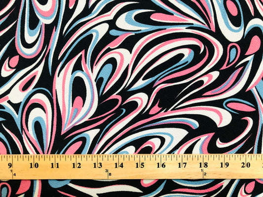 Liverpool Knit Fabric — Pink/Sky Blue/Ivory & Black Marble Swirl — 56" Wide, 200 GSM, 4-Way Stretch, Double Knit — Sold by the Yard (LVPR220)