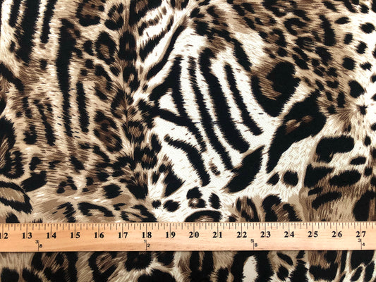 Liverpool Knit Fabric — Tan/Black & Ivory Wild Leopard — 56" Wide, 200 GSM, 4-Way Stretch, Double Knit — Sold by the Yard (LVPR226)
