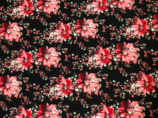 DTY Brushed Fabric| Charcoal Pink Red Flowers |DTYBPR535|Sold by the Yard| Jersey Fabric