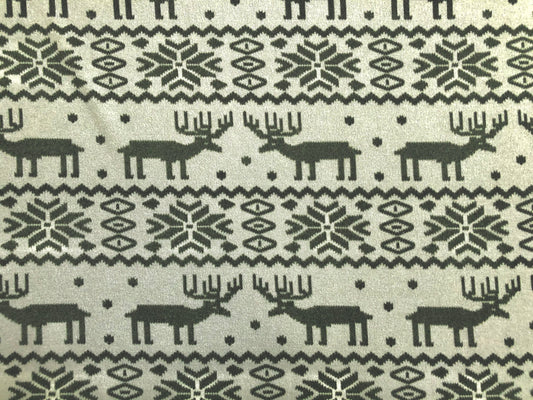 Warm & Soft Nordic Reindeer Hacci Knit – Vanilla/Olive, 56″ Wide, 95% Polyester 5% Spandex – Sold by the Yard (HSPR025)