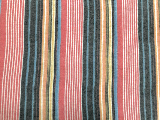 Premium Ultra-Soft Brushed Hacci Sweater Knit – Coral/Charcoal/Gold/Blue Multi-Stripe, 58″ Wide, 95% Polyester 5% Spandex – Sold by the Yard (HBPR031)