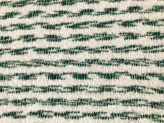 Premium Brushed Poly Chenille Mohair Sweater Knit – Ivory & Forest Mélange Stripe, 58″ Wide, 100% Polyester – Plush • Cozy • Easy-Care - By the Yard (CHMBPR04)