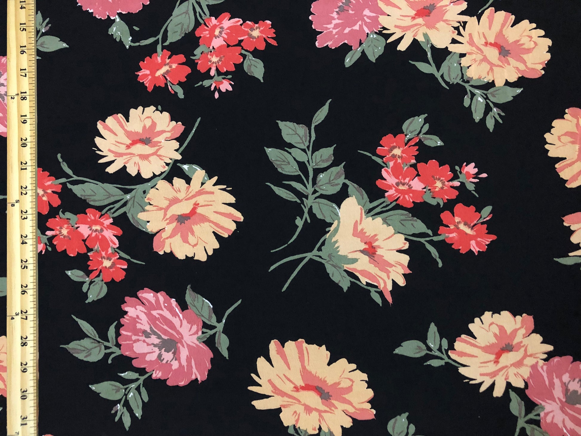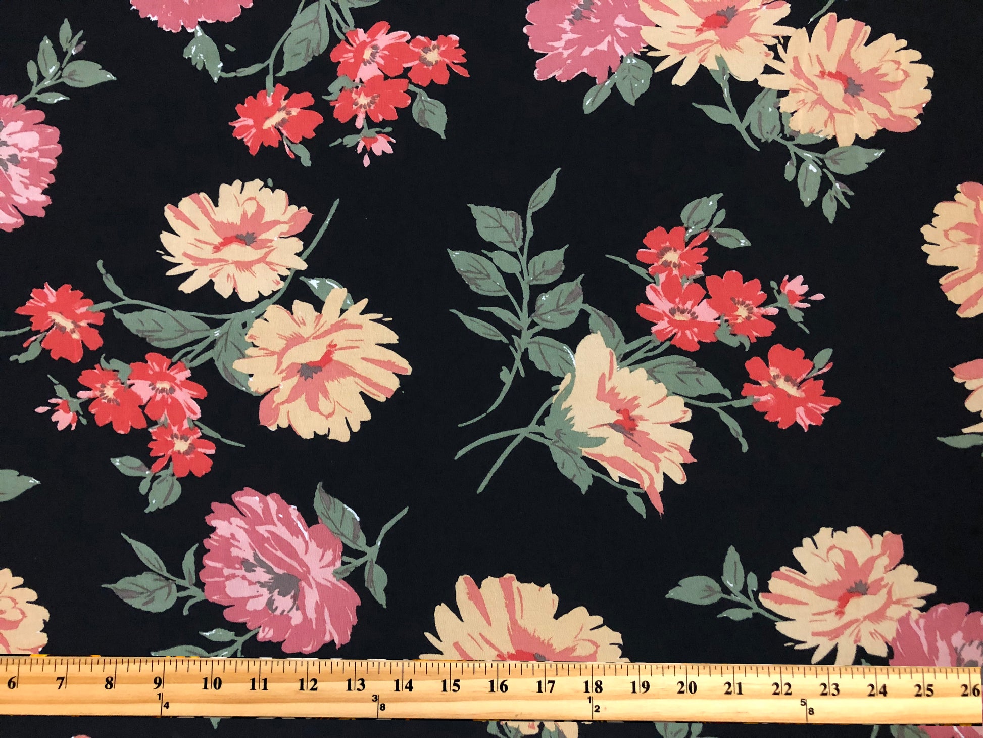 Black Chiffon with Butter-Yellow, Coral & Blush Florals — Sheer, 52" Wide, No Stretch — By the Yard (CFPR010)