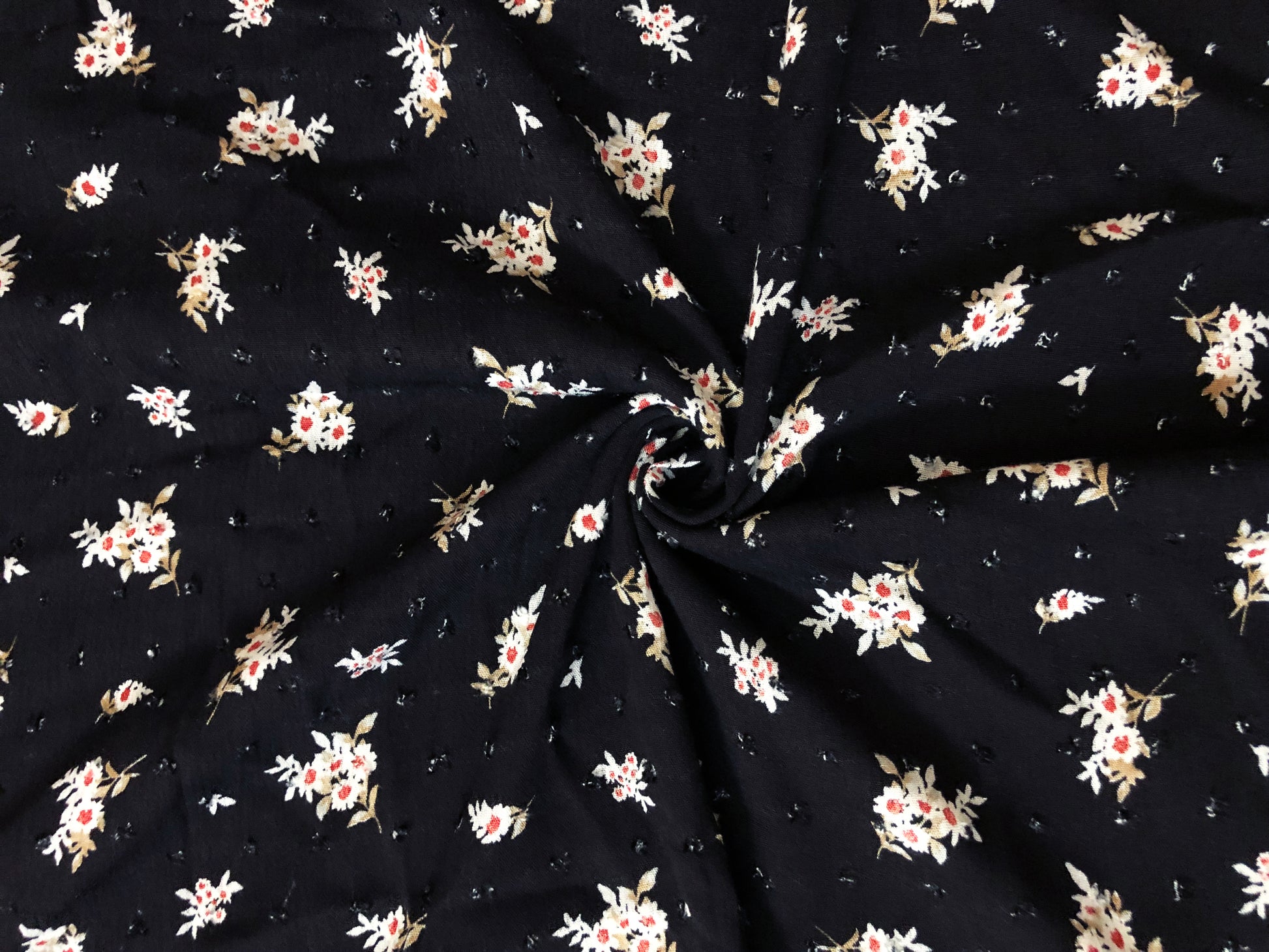 • 🔘 Texture: Tonal Swiss dot rayon gauze with ditsy floral print