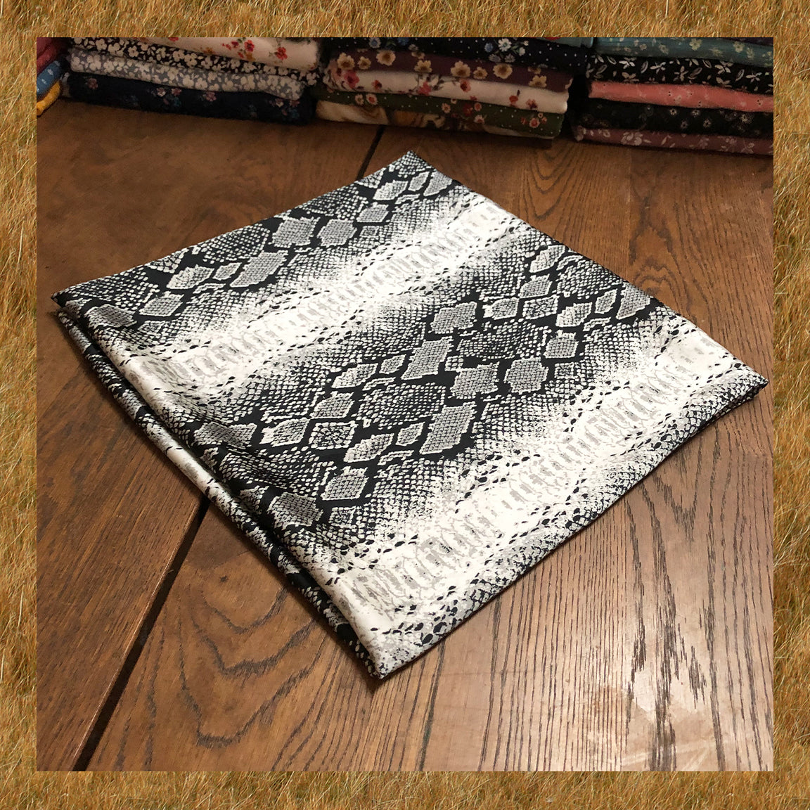 Make your makes hiss—in the best way. This Poly Dobby Georgette moves with fluid drape and a soft matte hand. The black-and-white snakeskin reads chic and modern—perfect for floaty blouses, twirl-worthy dresses, and statement scarves.