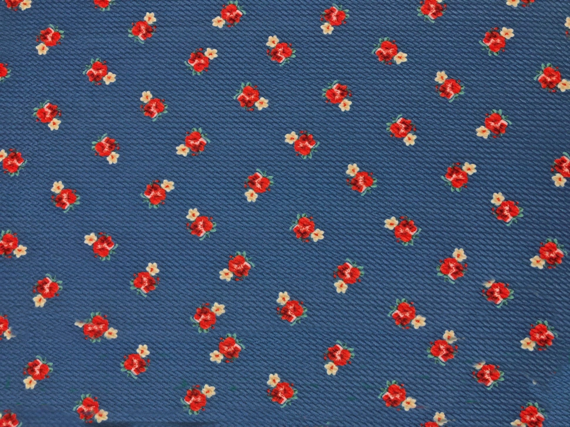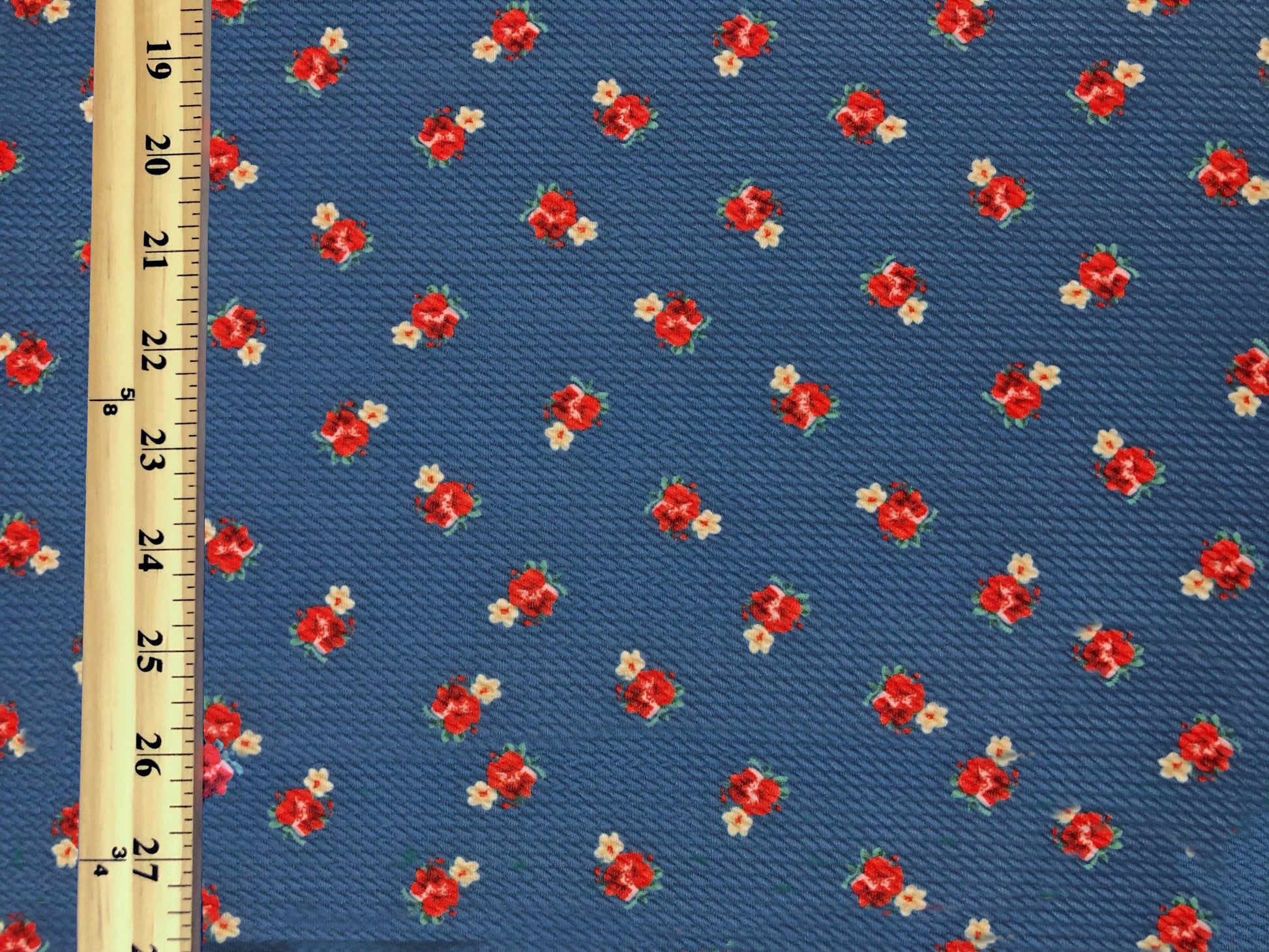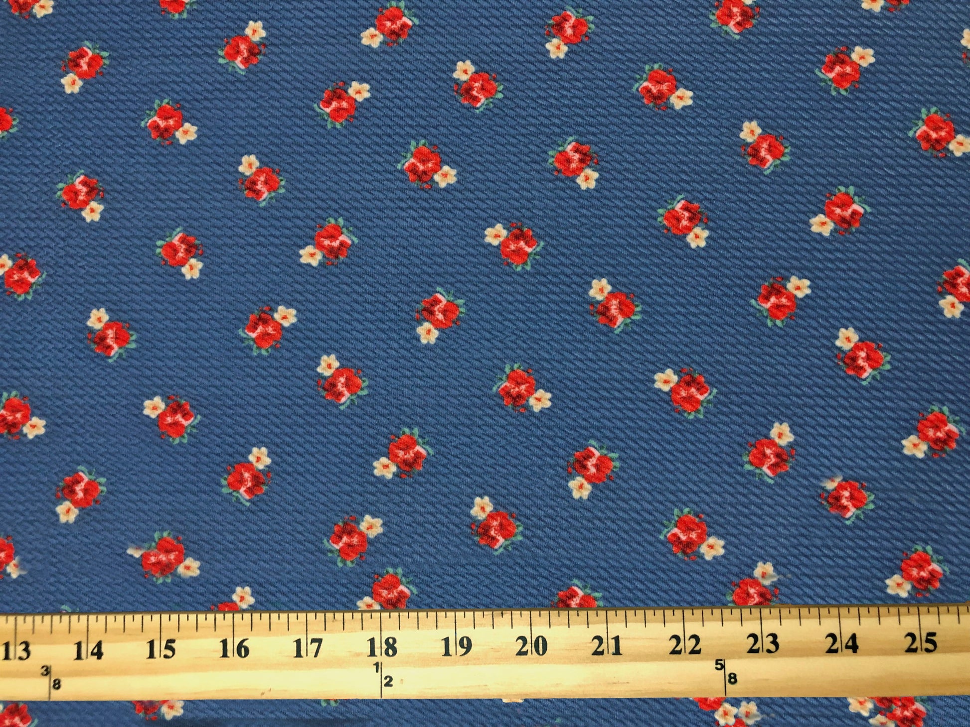 Unleash your creativity with our Bullet Knit Fabric – Mini Red Roses & Yellow Bud Ditsy Floral Stretch Print on Vibrant Blue. This premium Bullet knit features a beautiful print on a uniquely textured surface that adds depth to any project. This fabric is beloved by fashion designers and home sewists alike for its versatility. Create anything from stylish dresses, skirts, and leggings to adorable headbands, bows, and baby outfits – the possibilities are endless