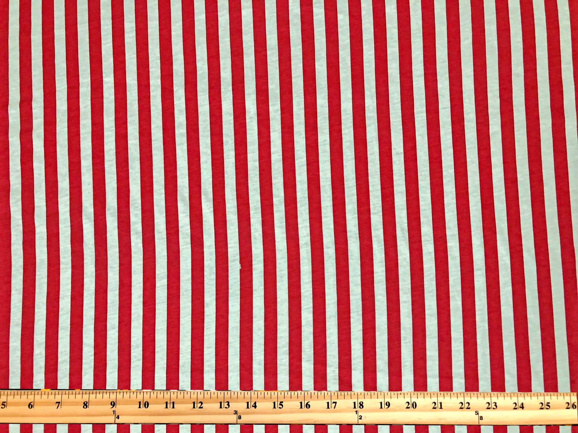 • 🎨 Color/Print: Red & white vertical stripes (even repeat)
