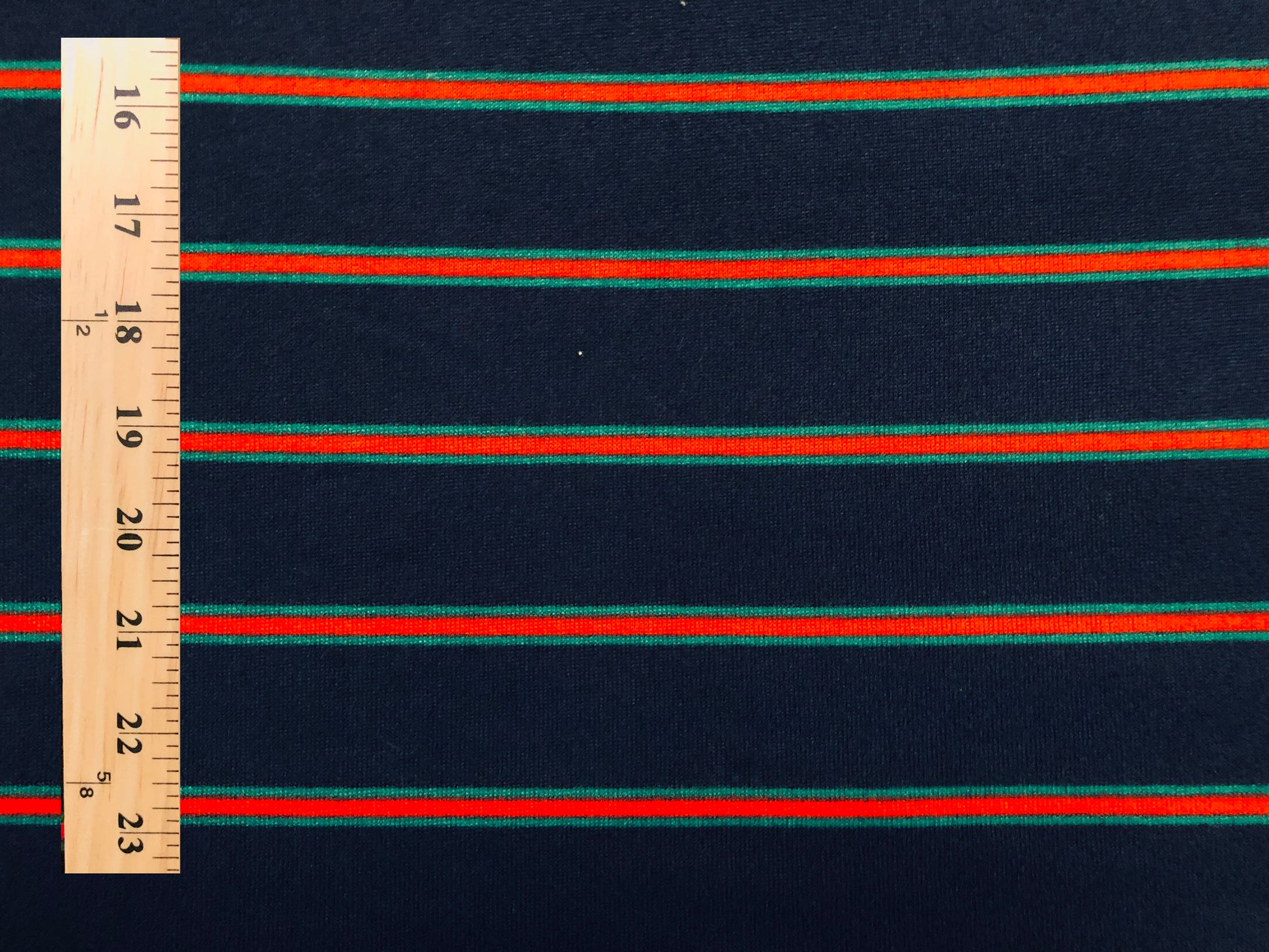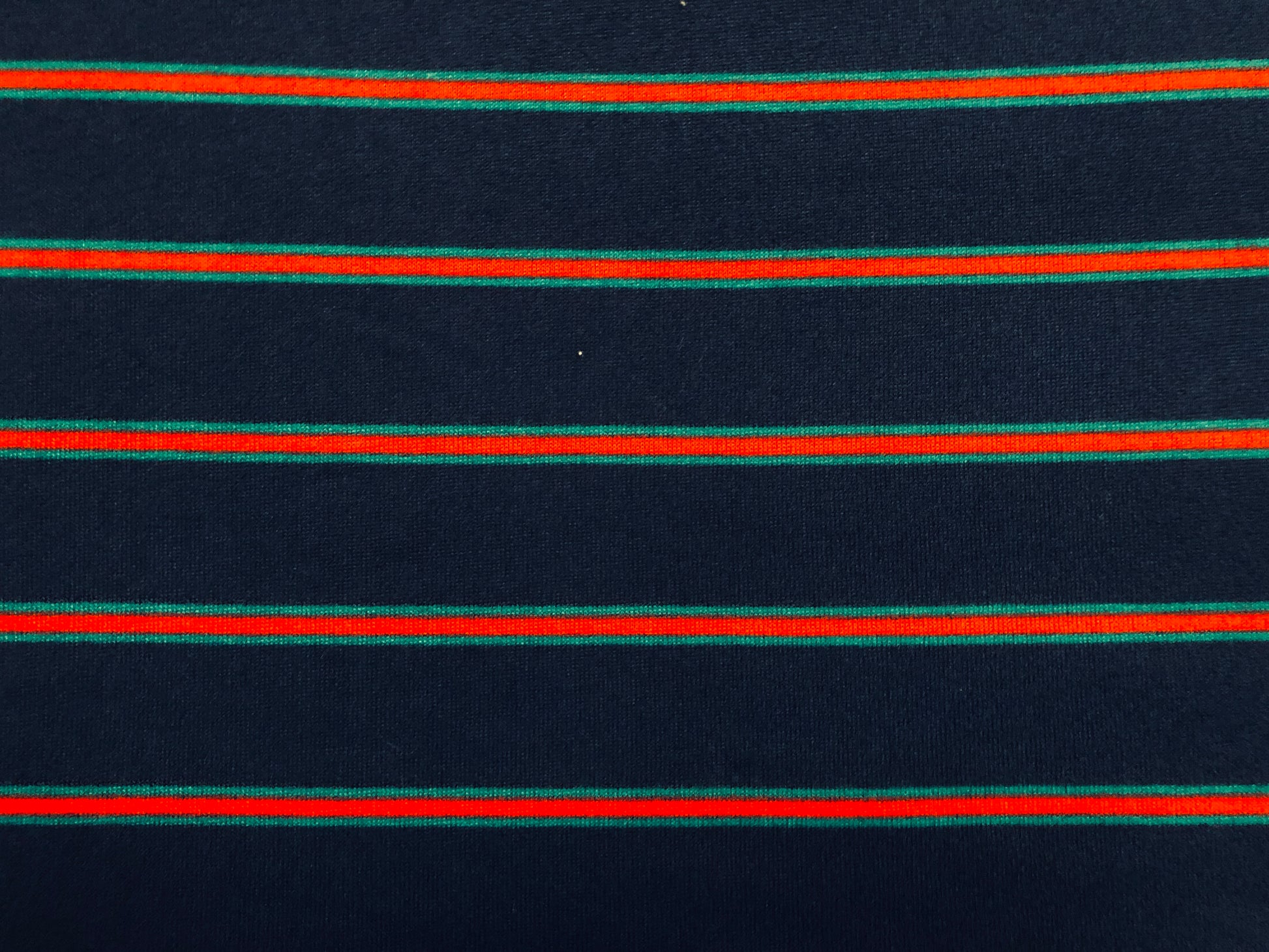 Classic Navy Pinstripe Hacci Sweater Knit – Teal & Red Stripes, 56″ Wide, 95% Polyester 5% Spandex – Sold by the Yard (HSPR028)